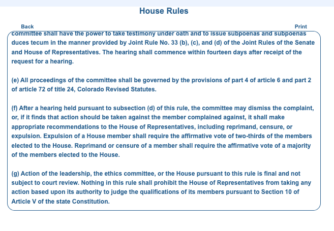 She also wanted the full House to weigh in on the ethics committee’s findings, which, in her interpretation of the House’s rules, is required.